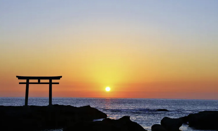ที่นี่ขึ้นชื่อว่าเป็นจุดชมพระอาทิตย์ขึ้น ที่แสนโรแมนติกแห่งหนึ่งใน ญี่ปุ่น และยังได้รับความนิยมในการเดินทางมาชม พระอาทิตย์แรกของปีอีกด้วย เพราะเบื้องหน้าจะได้เห็นเสาโทริอิสีขาว (Kamiiso-no-Torii) ตั้งตระหง่านบนโขดหินตรงข้ามกับศาลเจ้าโออาไร อิโซซากิ (Oarai Isosaki Shrine) ล้อมรอบด้วยทะเล ตัดกับแแสงพระอาทิตย์ที่ส่องรำไร