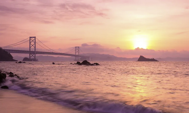 สะพานนารุโตะ (Onaruto Bridge) ตั้งอยู่ทางตอนเหนือของจังหวัดโทคุชิมะ (Tokushima) เชื่อมต่อเกาะชิโกะคุ (Shikoku) กับเกาะอาวะจิ (Awaji Island) และเป็นประตูสู่เกาะฮอนชู (Honshu) บริเวณจังหวัดเฮียวโกะ (Hyogo) เป็นที่รู้จักจากการชมน้ำวนขนาดใหญ่ตามธรรมชาติที่เกิดขึ้นใกล้กับสะพาน โดยมีบันทึกสถิติว่าเคยมีน้ำวนขนาดเส้นผ่านศูนย์กลางถึง 20 เมตร จึงกลายเป็นน้ำวนที่มีขนาดใหญ่ที่สุดในโลก น้ำวนอาจจะส่งเสียงกึกก้องในช่วงฤดูใบไม้ผลิและใบไม้ร่วงอยู่เสมอ ด้วยความสวยงามอลังการขนาดนี้จึงเป็นที่ดึงดูดนักท่องเที่ยวที่อยากมาชมความสวยงามของธรรมชาติแห่งนี้ในทุก ๆ ปี รวมถึงการชมพระอาทิตย์แรกของปีก็เช่นเดียวกัน