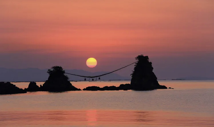 บงโกะ ฟุทะมิกะอุระ (Bungo Futamigaura) ตั้งอยู่ทางทิศตะวันออกเฉียงใต้ของเมืองโออิตะ (Oita) ภูมิภาคคิวชู (Kyushu) เป็นสถานที่ท่องเที่ยวที่ได้รับความนิยมในการมาชมพระอาทิตย์แรกของปีเพื่อความหวังให้สิ่งดี ๆ เข้ามาในชีวิตตลอดปี โดยมีจุดเด่นจากหินคู่ชายหญิงความสูง 17 เมตร และ 10 เมตร เชื่อมต่อกันด้วยเชือกชิเมะนะวะ (Shimenawa) เชือกศักดิ์สิทธิ์ที่ผูกหินทั้งสองเข้าไว้ด้วยกัน มีความยาวมากถึง 65 เมตร เส้นผ่านศูนย์กลาง 75 เซนติเมตร มีน้ำหนักมากถึง 2 ตัน จนกลายเป็นเชือกศักดิ์สิทธิ์ที่ใหญ่ที่สุดในญี่ปุ่น และยังเป็นจุดที่นักท่องเที่ยวชอบมาถ่ายภาพพระอาทิตย์ขึ้นอยู่เสมอ ๆ โดยเชือกจะถูกเปลี่ยนในทุกวันอาทิตย์ที่สองของเดือนธันวาคมในทุก ๆ ปี โดยกลุ่มอาสาสมัครในเมือง)